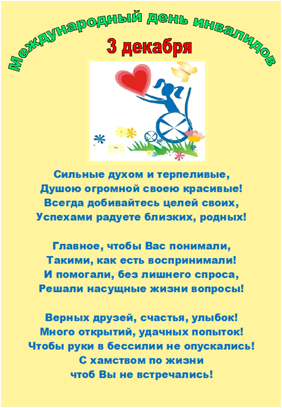 Декада инвалидов ежегодно проводится в соответствии с резолюцией 47 сессии Генеральной Ассамблеи ООН о провозглашении 3 декабря Международным днем инвалидов в целях привлечения внимания общественности к проблемам инвалидности, повышение качества их жизни и социального статуса путем осуществления общественно – политических и культурных мероприятий.